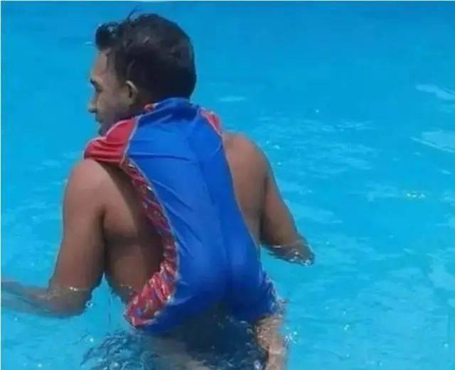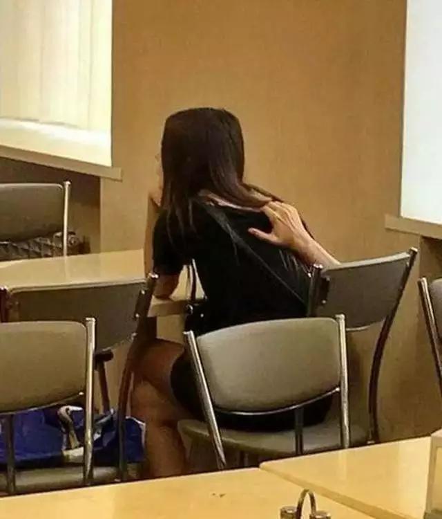 仔细看才能发现是女孩自己的手。不得不佩服女孩胳膊的柔韧性啊!
