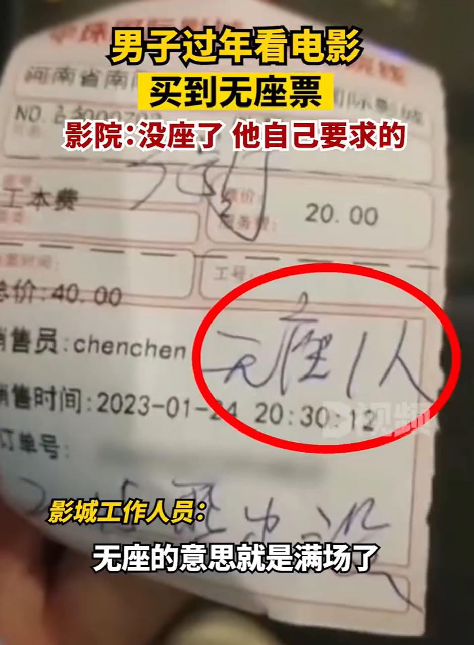 影院回应男子看电影买到无座票(电影院突然满座无票)
